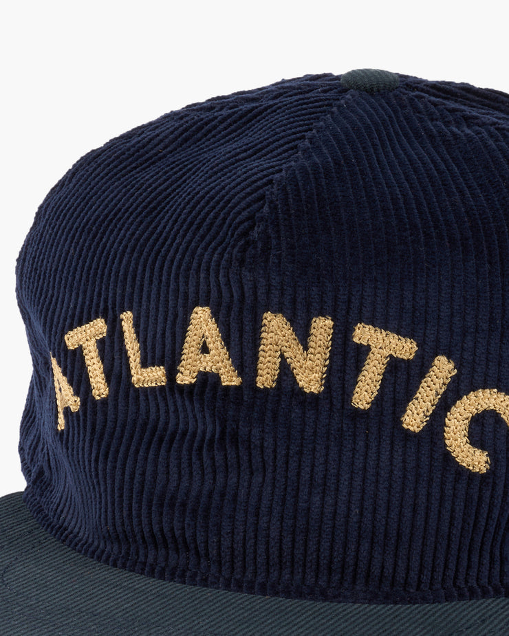 The ATLANTIC is back—reimagined in premium materials and loaded with nostalgic charm. This updated version of the classic Atlantic hat features ultra-soft 100% cotton corduroy (Bedford cloth) and vintage-style embroidery that nods to mid-century American sports culture. Inspired by a fictional East vs. West—Atlantic vs. Pacific—competition from the early-to-mid 1960s, it channels team spirit with a timeless edge.