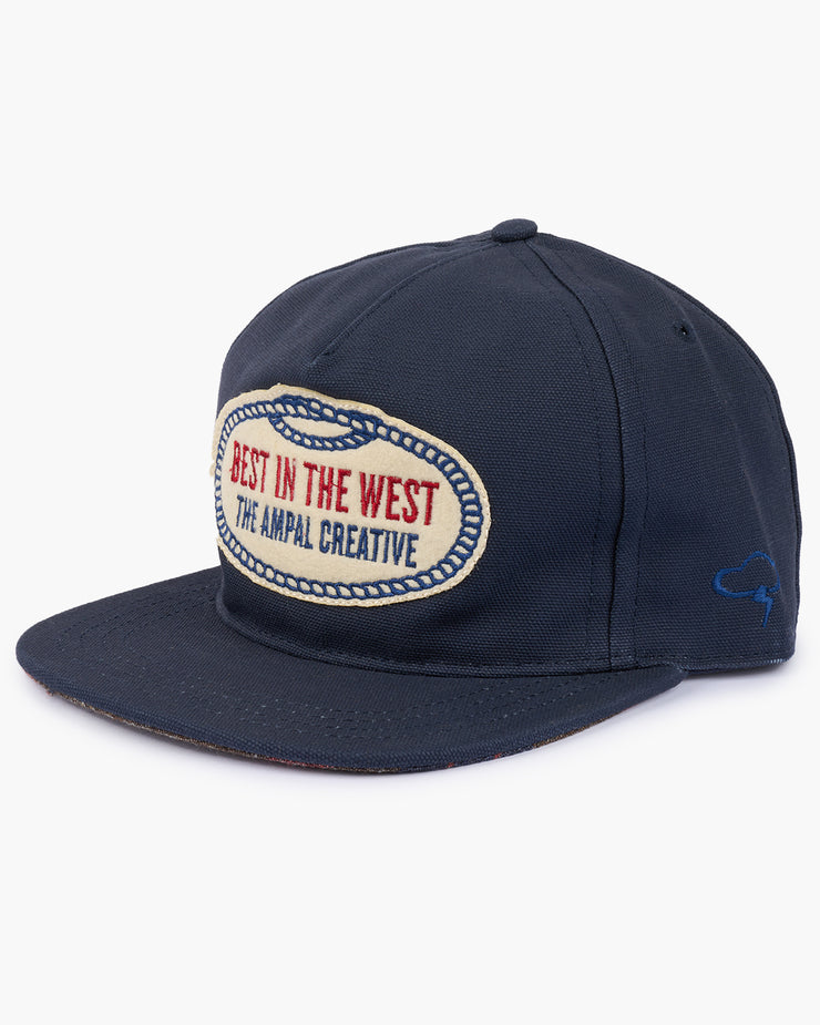 The Ampal Creative proudly delivers Best in the West—a cap that celebrates craftsmanship, individuality, and vintage Americana. Handmade in Los Angeles, this cap features a deadstock 100% cotton canvas twill upper and a standout underbrim lined with rare deadstock blanket stripe fabric, lending it unique character and texture.