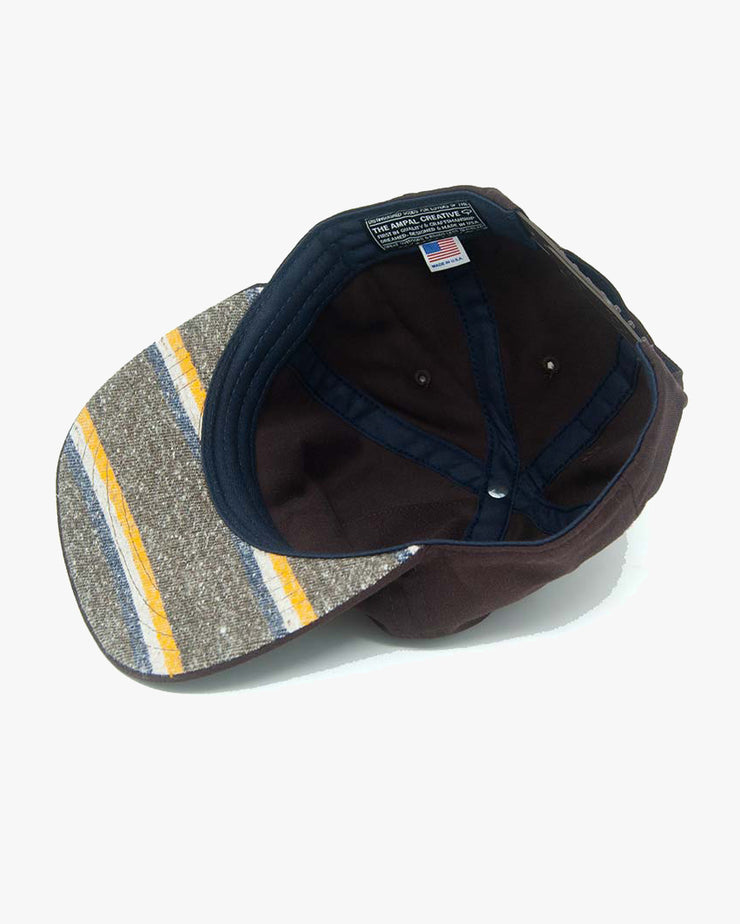 Crafted with an eye for vintage detail and premium construction, this cap from The Ampal Creative brings together American heritage and Japanese craftsmanship. The unstructured upper is made from 100% Bedford twill, offering a soft yet durable feel that’s ideal for everyday wear. The underbrim features an eye-catching Japanese blanket stripe fabric, adding a unique pattern contrast that elevates the look.