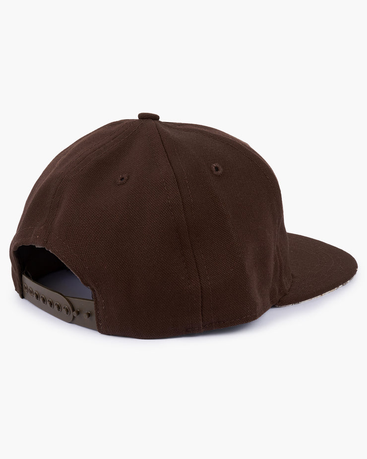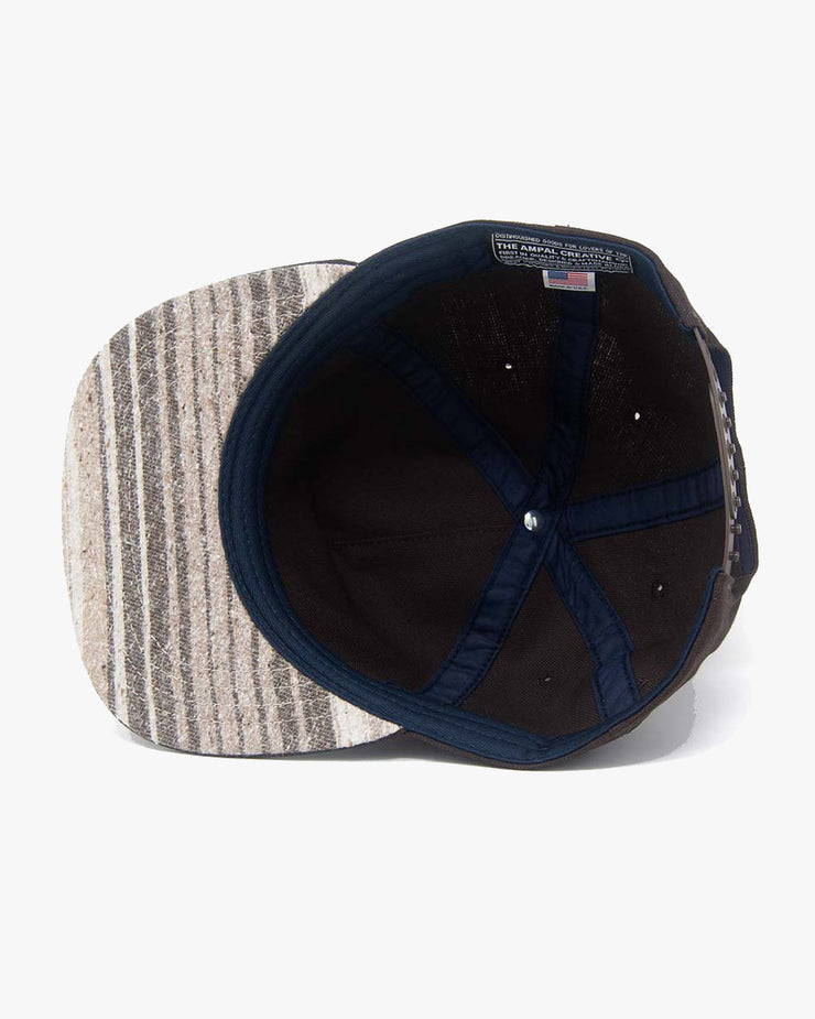 Made in Los Angeles, the cap features a deadstock US 100% cotton canvas twill upper and a standout blanket stripe underbrim—a nod to classic Western Americana. An embroidered felt patch adds visual punch, while the unstructured, crushable crown offers an easy, relaxed fit. The snapback closure provides adjustability, and Ampal’s deep-profile unstructured fit completes the look with a vintage-meets-modern shape.