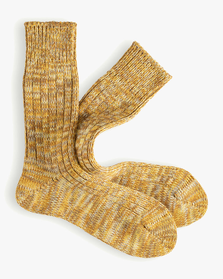 The Forest Collection Socks take their inspiration from the shifting colours of the forest across the seasons — from the rich greens of spring to the warm oranges and browns of autumn. Made from a blend of five coloured Egyptian cotton yarns, these socks showcase a beautiful interplay of tones that evoke the natural transitions of the forest.
