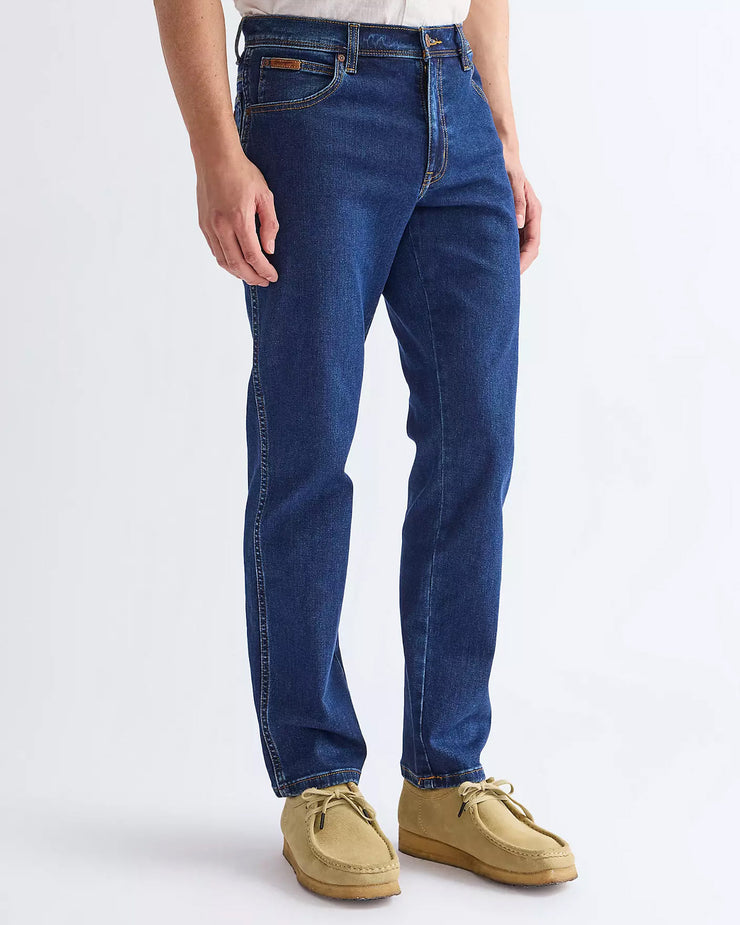 The Wrangler Texas Stretch is the classic 5 pocket jean produced by Wrangler. The Wrangler Texas Stretch features a regular waist and straight leg, to give a good clean regular fit. Featuring a zip fly and 5 pocket construction, the Wrangler Texas Stretch also incorporates the classic 'W' stitching on rear pockets and the Wrangler leather patch which can be found on all jeans.